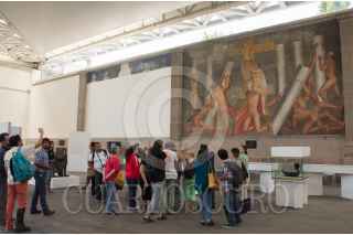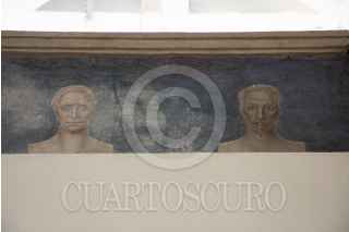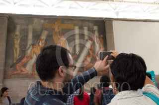 CIUDAD DE MÉXICO, 06MAYO2017.- El Instituto Nacional de Bellas Artes (INBA), realizó un recorrido para conocer la historia del pintor mexicano Ángel Zárraga y su mural “La voluntad de construir”. Dicha obra de arte estaba proyectada a estar conformada por cuatro secciones, sin embargo, Zárraga sólo terminó la primera parte, debido a su muerte el 22 de septiembre de 1946. El mural se encuentra ubicado en la sala de los escritores de la Biblioteca de México. FOTO: MARIO JASSO /CUARTOSCURO.COM