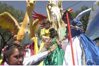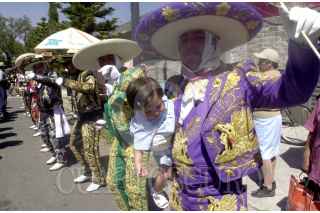 México D.F 29FEB2004.- Originarios del barrio fuerte de Tlaltenco se preparan para bailar la danza de chinelos como parte de su tradicional carnaval que se celebra antes de semana santa. FOTO: Eunice Adorno/CUARTOSCURO.COM