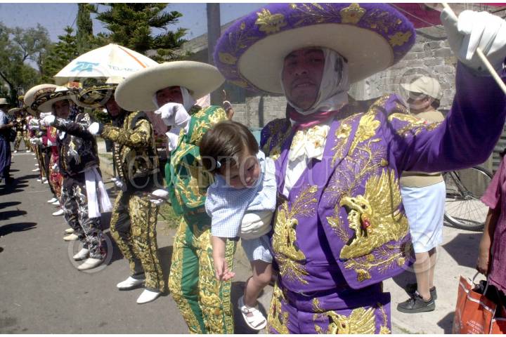 México D.F 29FEB2004.- Originarios del barrio fuerte de Tlaltenco se preparan para bailar la danza de chinelos como parte de su tradicional carnaval que se celebra antes de semana santa. FOTO: Eunice Adorno/CUARTOSCURO.COM