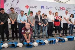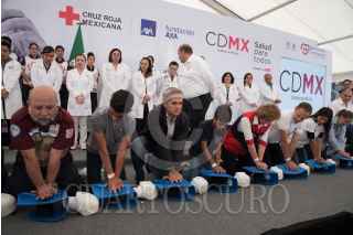CIUDAD DE MÉXICO, 07MAYO2017.- Miguel Ángel Mancera Espinosa, jefe de gobierno, y Fernando Suinaga, presidente de la Cruz Roja, encabezaron el inicio del evento Entrenamiento masivo en la técnica salvavidas de Reanimación Cardiopulmonar. FOTO: TERCERO DÍAZ /CUARTOSCURO.COM