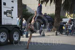 CIUDAD DE MÉXICO, 07MAYO2017.- A un costado del Monumento a la Revolución, un joven realiza una danza de hip-hop en la calle. FOTO: MARIO JASSO /CUARTOSCURO.COM