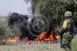 ACAJETE, PUEBLA, 07MAYO2017.- Bomberos y ejército laboran en el incendio ocasionado tras la explosión de una toma clandestina en Santa María Nenetzintla perteneciente al municipio de Acajete, a un costado de la autopista Puebla-Orizaba. FOTO: HILDA RÍOS /CUARTOSCURO.COM