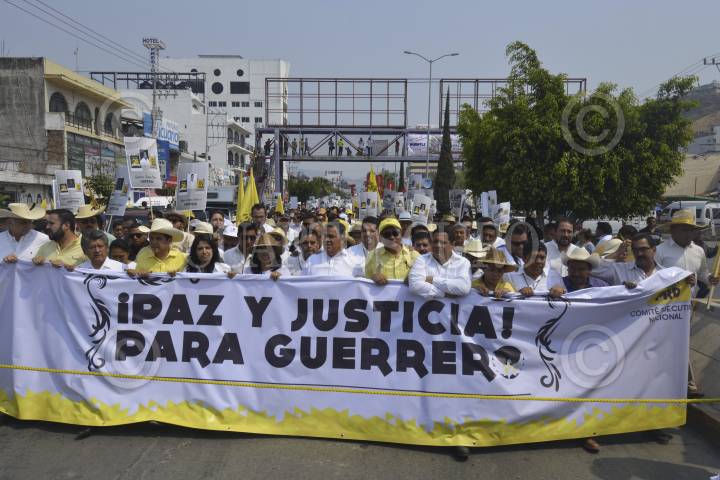 CHILPANCINGO, GUERRERO, 07MAYO2017.- Militantes y dirigente perredistas nacionales y locales marcharon por la paz en el estado, además de pedir justicia por los asesinatos de miembros de su partido. A la cabeza del contingente estuvieron Alejandra Barrales, Beatriz Mojica y Celestino Cesáreo Guzmán. FOTO: JOSÉ I. HERNÁNDEZ /CUARTOSCURO.COM