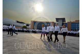CHILPANCINGO,GUERRERO, 08MAYO2017.- Héctor Astudillo Flores, gobernador del estado de Guerrero, acompañado de su esposa Mercedes Calvo de Astudillo y del gabinete del Gobierno del Estado, Florencio Salazar Adame secretario general de gobierno, Humberto Israel Díaz Villanueva, secretario de la juventud y la niñez, así como demás secretarios encabezaron los honores al lábaro patrio e inauguraron el edificio Tierra Caliente, reconstruido por el gobierno de Héctor Astudillo Flores y quemado durante las protestas de organizaciones y de estudiantes de la normal rural Raúl Isidro Burgos de Ayotzinapa en repudio por la desaparición de sus compañeros y la exigencia de la presentación con vida de los 43 desparecidos. FOTO: JOSÉ I. HERNÁNDEZ /CUARTOSCURO.COM