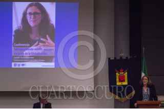 CIUDAD DE MÉXICO, 09MAY02017.- Cecilia Malmström, comisaria de comercio de la Unión Europea, asistió a la Facultad de Economía de la Universidad Nacional Autonóma de México (UNAM), a una charla con maestros y alumnos. La comisaria habló sobre las relaciones de comercio entre México y Europa, y que estas no deben afectar la democracia en los países. FOTO: SELENE PACHECO /CUARTOSCURO.COM