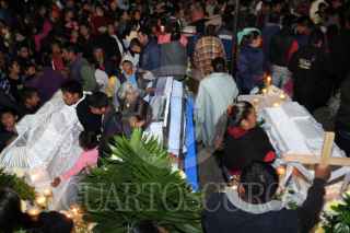 CHILCHOTLA, PUEBLA, 10MAYO2017.- Familiares y vecinos velan los cuerpos de las 14 personas fallecidas durante la explosión de un polvorín en la comunidad de San Isidro perteneciente al municipio de Chilchotla. FOTO: CUARTOSCURO.COM