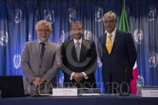 CIUDAD DE MÉXICO, 10MAYO2017.- Luis Felipe Puente, coordinador nacional Protección Civil; Antonio Molpeceres, coordinador residente del Sistema de Naciones Unidas México; Giancarlo Summa, director del Centro de Información de las Naciones Unidas México, durante la presentación de “La plataforma global para la reducción de desastres 2017”, que será llevada a cabo a partir del próximo 24 de mayo. En la agenda de la plataforma tendrán como objetivo principal, monitorear el progreso e identificar las medidas para avanzar en temas de seguridad en la prevención de desastres. FOTO: MARIO JASSO /CUARTOSCURO.COM