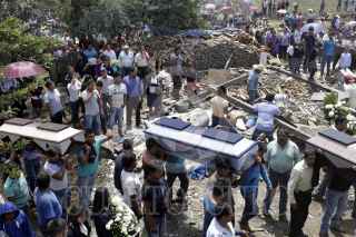CHILCHOTLA, PUEBLA, 10MAYO2017.- Familiares y habitantes de las 14 personas fallecidas durante la explosión de un polvorín en la comunidad de San Isidro perteneciente al municipio de Chilchotla, realizaron un recorrido con los féretros por la zona de la explosión hasta el panteón recién inaugurado en donde fueron sepultados los 12 de los 14 cuerpos. FOTO: HILDA RÍOS/ CUARTOSCURO.COM