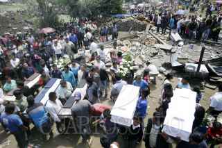CHILCHOTLA, PUEBLA, 10MAYO2017.- Familiares y habitantes de las 14 personas fallecidas durante la explosión de un polvorín en la comunidad de San Isidro perteneciente al municipio de Chilchotla, realizaron un recorrido con los féretros por la zona de la explosión hasta el panteón recién inaugurado en donde fueron sepultados los 12 de los 14 cuerpos. FOTO: HILDA RÍOS/ CUARTOSCURO.COM