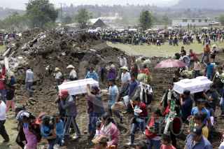 CHILCHOTLA, PUEBLA, 10MAYO2017.- Familiares y habitantes de las 14 personas fallecidas durante la explosión de un polvorín en la comunidad de San Isidro perteneciente al municipio de Chilchotla, realizaron un recorrido con los féretros por la zona de la explosión hasta el panteón recién inaugurado en donde fueron sepultados los 12 de los 14 cuerpos. FOTO: HILDA RÍOS/ CUARTOSCURO.COM