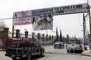 QUECHOLAC, PUEBLA, 11MAYO2017.- Habitantes de la junta auxiliar de Palmarito de Tochapan colocaron mantas en entrada de la población así como en la iglesia y presidencia auxiliar en protesta luego de los constantes operativos militares en contra de huachicoleros así como por la supuesta ejecución de un civil por elementos del ejército. FOTO: HILDA RÍOS / CUARTOSCURO.COM