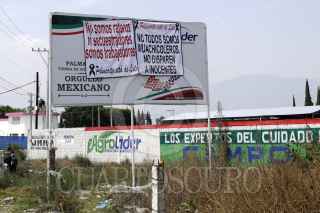 QUECHOLAC, PUEBLA, 11MAYO2017.- Habitantes de la junta auxiliar de Palmarito de Tochapan colocaron mantas en entrada de la población así como en la iglesia y presidencia auxiliar en protesta luego de los constantes operativos militares en contra de huachicoleros así como por la supuesta ejecución de un civil por elementos del ejército. FOTO: HILDA RÍOS / CUARTOSCURO.COM
