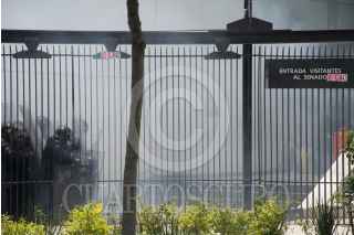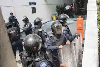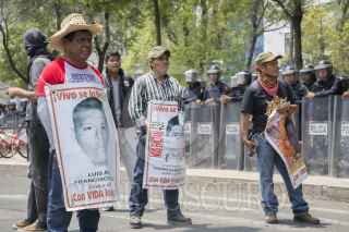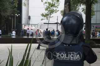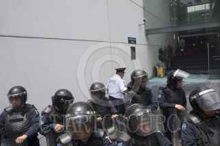 CIUDAD DE MÉXICO, 11MAYO2017.- Padres de los 43 normalistas desaparecidos en Ayotzinapa, se manifestaron afuera de las instalaciones del Senado de la República y bloquearon la avenida Reforma esquina con Insurgentes, debido a que no tuvieron respuesta por parte de las autoridades para ser recibidos para el diálogo. Por otro lado, activistas ajenos a los familiares de los normalistas, arrojaron petardos al acceso de visitantes del Senado, lo que provocó que la puerta de cristal se rompiera. FOTO: MARIO JASSO /CUARTOSCURO.COM