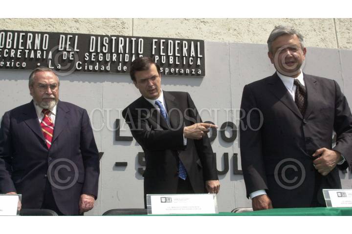 México D.F. 09 MARZO 2004.- Bernardo Bátiz, procurador de justicia del DF, Marcelo Ebrard, secretario de seguridad pública y Andrés Manuel López Obrador, jefe de Gobierno, a su llegada a la inauguración del modulo de Coordinación territorial 5 de Coyoacan. FOTO: Sandra Perdomo/CUARTOSCURO.COM