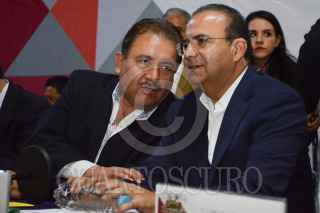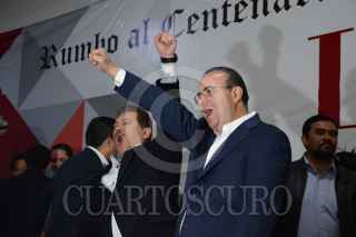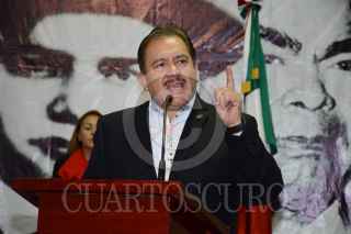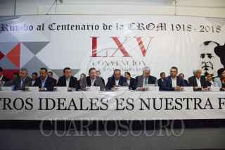 CIUDAD DE MÉXICO, 13MAYO2017.- Alfonso Navarrete Prida, secretario del trabajo y previsión social; Carlos Aceves del Olmo, secretario general de la Confederación de Trabajadores de México (CTM), durante la LXV Convención Nacional Ordinaria y XCIX Aniversario de la Fundación de la Confederación Regional Obrera Mexicana (CROM), en el marco del 99 aniversario de su creación. FOTO: MARIO JASSO /CUARTOSCURO.COM