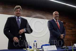 CIUDAD DE MÉXICO, 15MAYO2017.- Enrique Cabrero Mendoza, director del Consejo Nacional de Ciencia y Tecnología (Conacyt), y Enrique de la Madrid Cordero, secretario de Turismo (Sectur), encabezaron la firma de convenio de colaboración entre dichas dependencias. Cabrero Mendoza destacó los más de 130 millones de pesos destinados a proyectos turísticos, así como las nuevas formas de convivencia y múltiples disciplinas que se han desarrollo gracias a los avances científicos-tecnológicos. FOTO: GALO CAÑAS /CUARTOSCURO.COM