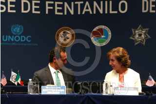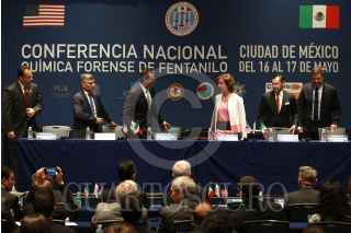 CIUDAD DE MÉXICO, 16MAYO2017.- Alberto Elías Beltrán, subprocurador de Asuntos Jurídicos e Internacionales de la Procuraduría General de la República (PGR), y la embajadora estadounidense Roberta Jacobson, durante la inauguración la Conferencia Nacional de Química Forense de Fentanilo. FOTO: PGR /CUARTOSCURO.COM