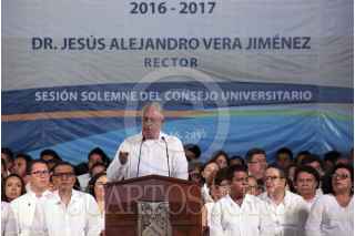 CUERNAVACA, MORELOS, 16MAYO2017.- Alejandro Vera Jiménez, rector de la Universidad Autónoma del Estado de Morelos, presidio la sesión solemne del Consejo Universitario, ahí leyó su 5to informe de actividades. FOTO: MARGARITO PÉREZ RETANA /CUARTOSCURO.COM