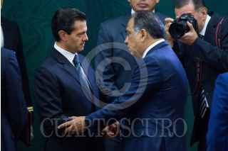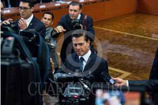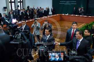CIUDA DE MÉXICO, 17MAYO2017.- El presidente Enrique Peña Nieto se acerco a los medios de comunicación asistentes a la reunión convocada por él en torno a la protección a periodistas y la libertad de expresión. FOTO: GALO CAÑAS /CUARTOSCURO.COM