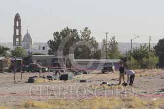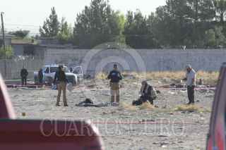 CIUDAD JUÁREZ, CHIHUAHUA, 18MAYO2017.- Tres hombres fueron ejecutados a balazos en la colonia Barrio Azul. El hecho se presentó en un terreno baldío sobre las calle Puerto de Palos y Libramiento Independencia. Según la información los tres hombres oscilan entre los 25 y 30 años, mismos que fueron encontrados amarrados y con balazos en la cabeza, a su vez presentaban huellas de tortura. Al lugar acudieron elementos policíacos quienes delimitaron la zona para comenzar las investigaciones pertinentes. FOTO: NACHO RUIZ /CUARTOSCURO.COM