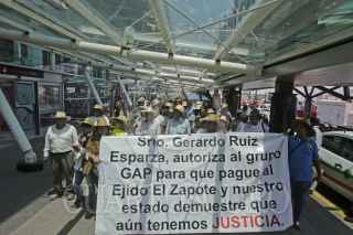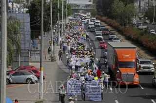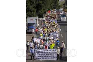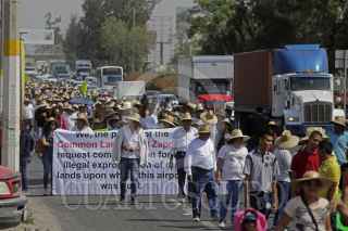 TLAJOMULCO DE ZUÑIGA, JALISCO. 18MAYO2017.- Alrededor de 500 Ejidatarios del poblado del Zapote, caminaron del kilómetro 13 de la carretera a Chapala hacia el Aeropuerto internacional de Guadalajara, para manifestar su inconformidad, ya que el gobierno estatal y la SCT no les han resuelto su problemática en lo que respecta a sus tierras, lugar donde se ubica la terminal aérea Miguel Hidalgo. FOTO: FERNANDO CARRANZA GARCIA / CUARTOSCURO.COM