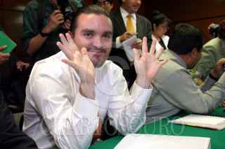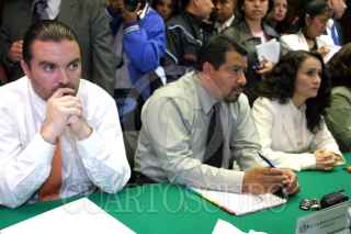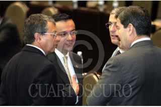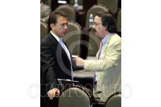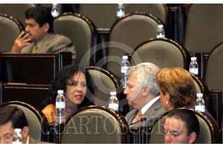 MEXDF25MARZO2004.- Durante la sesión de la camara de diputados, el priísta Miguel angel Yunes conversa con el panista Juan Molinar Horcasitas. FOTO: Moisés Pablo/CUARTOSCURO.COM