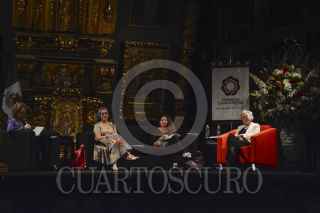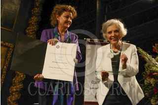 CIUDAD DE MÉXICO, 18MAYO2017.- Elena Poniatowska, periodista y escritora mexicana, en vísperas de su cumpleaños número 85, recibió la presea Sor Juana Inés de la Cruz por su contribución al desarrollo periodístico, académico y cultural de México. Poniatowska enfatizó su tristeza por los recientes asesinatos de los periodistas: Miroslava Breach en marzo, y de Javier Valdez, el pasado 16 de mayo. La ceremonia se llevó a cabo en el Auditorio Divino Narciso de la Universidad del Claustro de Sor Juana. FOTO: MARIO JASSO /CUARTOSCURO.COM