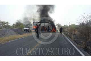 APATZINGÁN, MICHOACÁN, 19MAYO2017.- Sujetos armados realizaron bloqueos carreteros en distintos puntos de Michoacán para incendiar camiones de diferentes empresas comerciales. FOTO: CUARTOSCURO.COM