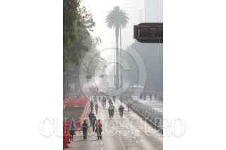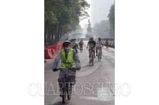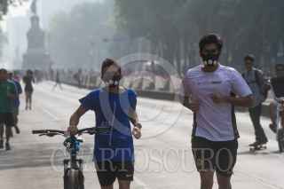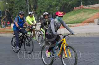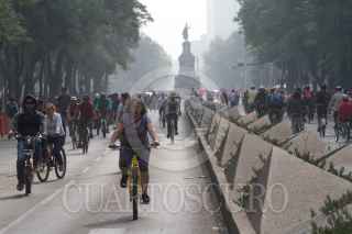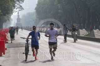CIUDAD DE MÉXICO, 21MAYO2017.- Con todo y contingencia ambiental, la cual recomienda evitar la actividad física en espacios abiertos, los capitalinos salieron a correr, andar en bici o simplemente caminar en el circuito del Paseo Ciclista dominical. Una intensa bruma grisácea se observo por la mañana en toda la ciudad. FOTO: MOISÉS PABLO /CUARTOSCURO.COM