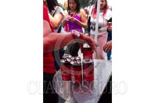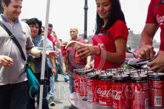 CIUDAD DE MÉXICO, 21MAYO2017.- Jóvenes representantes de la empresa Coca Cola regalaron unidades de su presentación de Coca Cola sin azúcar afuera de la Catedral Metropolitana. FOTO: MOISÉS PABLO /CUARTOSCURO.COM