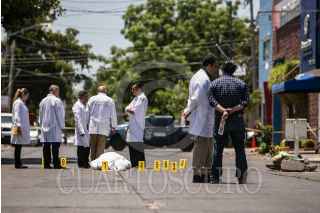 CULIACAN, SINALOA, 22MAYO2017.- A una semana del asesinato del periodista Javier Valdez, Peritos de la Fiscalía Especializada en Atención a Delitos contra la Libertad de Expresión (FEADLE) de la Procuraduría General de la Rebúplica (PGR) realizaron la recreación de los hechos del crimen del director del semanario de Rio Doce. Las calles Riva Palacio y Rafael Iturbide en la colonia Aldama fueron cerradas con cintas para hacer las investigaciones correspondientes. FOTO: RASHIDE FRIAS /CUARTOSCURO.COM
