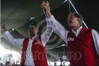 SAN MATEO ATENCO, ESTADO DE MÉXICO, 23MAYO2017.- El candidato por la coalición PRI, Nueva Alianza, PES y Verde Ecologista Alfredo del Mazo en compañía del presidente del Comité Ejecutivo Nacional del PRI, Enrique Ochoa Reza sostuvo un encuentro con liderazgos sociales, sociedad civil y vecinos del sector para dar a conocer sus propuestas principalmente en materia educativa, seguridad, salud y transporte. FOTO: RASHIDE FRIAS /CUARTOSCURO.COM