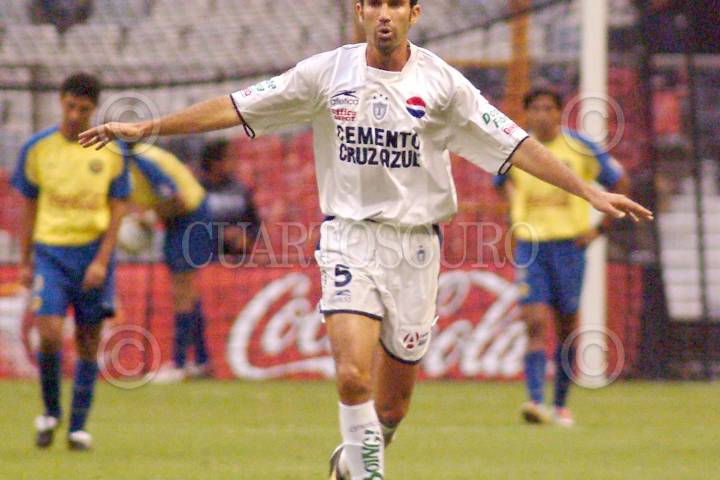 México, D. F. 27MARZO2004.- Las Águilas del América cayeron 2 goles a 1 ante los Tuzos de Pachuca en el juego de la jornada 12 del torneo de clausura 2004 en el estadio azteca. En la gráfica Cuauhtemoc Blanco (américa) y Manuel Vidrio (Pachuca). FOTO: Iván Stephens/CUARTOSCURO.COM