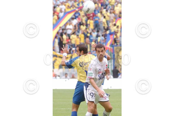 México, D. F. 27MARZO2004.- Las Águilas del América cayeron 2 goles a 1 ante los Tuzos de Pachuca en el juego de la jornada 12 del torneo de clausura 2004 en el estadio azteca. En la gráfica Cuauhtemoc Blanco (américa) y Manuel Vidrio (Pachuca). FOTO: Iván Stephens/CUARTOSCURO.COM