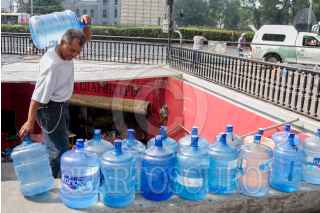 CIUDAD DE MÉXICO, 24MAYO2017.- Un hombre reparte agua purificada embotellada a los restaurantes que se ubican en uno de los desniveles del metro Chapultepec, FOTO: MOISÉS PABLO /CUARTOSCURO.COM