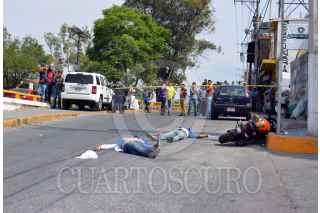 CHILPANCINGO, GUERRERO.24MAYO2017.- Dos hombres que viajaban en una motocicleta por lateral del boulevard Vicente Guerrero cerca del puente Ayutla fueron asesinados por desconocidos, el lugar fue acordonado por autoridades y los cuerpos fueron trasladado por el servicio médico Forense. FOTO: JOSÉ I. HERNÁNDEZ / CUARTOSCURO.COM