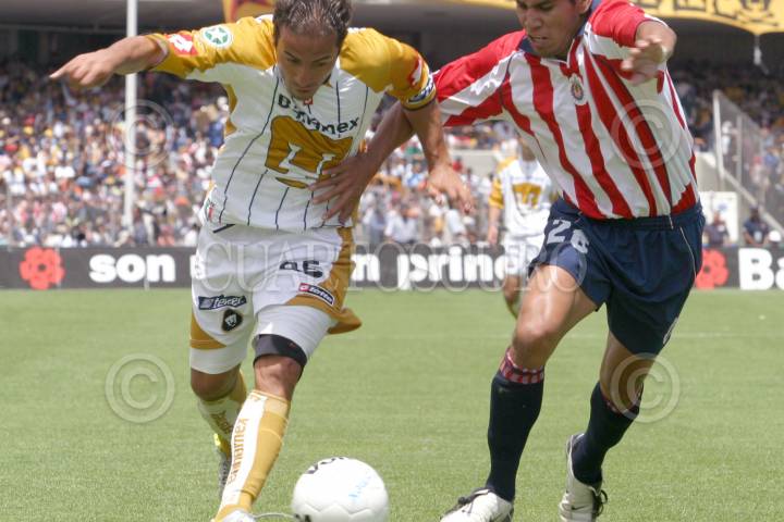 México D.F. 28MARZO2004.- Los Pumas de la UNAM vencieron 3 goles a cero a las Chivas Rayadas de Guadalajara en el encuentro de la jornada 12 del torneo de clausura 2004 en el estadio de C. U. En la gráfica Bruno Marioni (PUMAS) festeja uno de los golews de su equipo. FOTO: Iván Stephens/CUARTOSCURO.COM