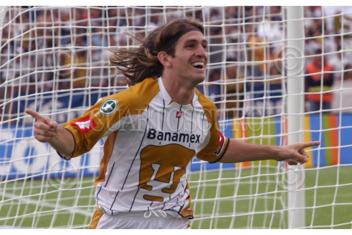 México D.F. 28MARZO2004.- Los Pumas de la UNAM vencieron 3 goles a cero a las Chivas Rayadas de Guadalajara en el encuentro de la jornada 12 del torneo de clausura 2004 en el estadio de C. U. En la gráfica Bruno Marioni (PUMAS) festeja uno de los golews de su equipo. FOTO: Iván Stephens/CUARTOSCURO.COM