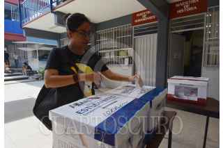 CHILPANCINGO, GUERRERO, 25MAYO2017.- Estudiantes de la preparatoria uno de la Universidad Autónoma de Guerrero (UAG) bloquearon la avenida Juárez, frente al plantel, para exigir la anulación la elección de Consejeros Universitarios y Académicos. Los alumnos dijeron estar inconformes con que sea una planilla única y se quejaron de que no les permitieron registrar ninguna otra, además de que no hubo convocatoria pública. En la imagen, aspectos de las votaciones. FOTO: JOSÉ I. HERNÁNDEZ /CUARTOSCURO.COM