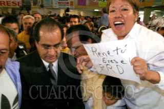 México, D.F. 28 MARZO 2004.- René Bejarano a su llegada al Gran Forum, donde habló acerca de su inocencia en el caso Ahumada y los videoescándalos. FOTO: Sandra Perdomo/CUARTOSCURO.COM