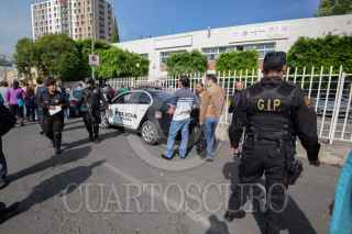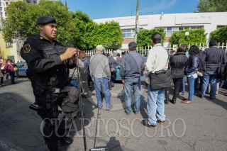 TOLUCA, ESTADO DE MÉXICO, 26MAYO2017.- Elementos de la CESC, Bomberos de Toluca y Polcia Municipal realizaron la revisión del edificio que alberga las oficinas de la delegación de la Secretaria del Trabajo y Previsión Social federal, evacuando al personal que se encontraba laborando en ese momento al registrarse una amenaza de bomba en el edificio. FOTO: ARTEMIO GUERRA BAZ / CUARTOSCURO.COM