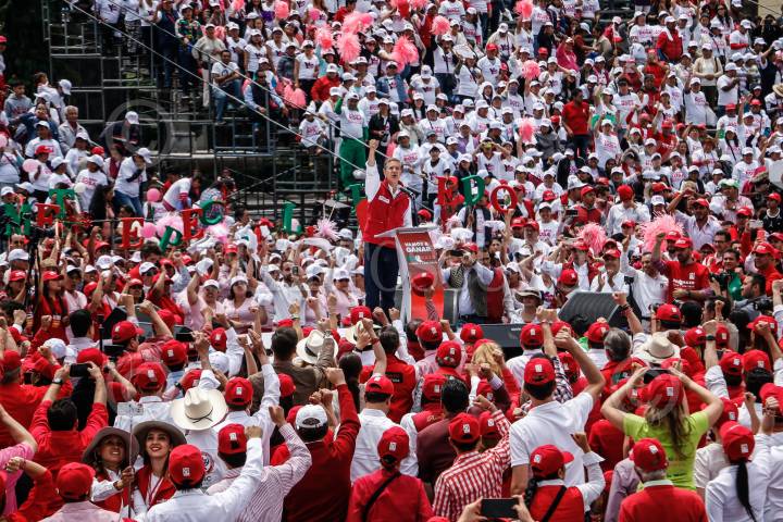 TOLUCA, ESTADO DE MÉXICO, 28MAYO2017.- El candidato priista a la gubernatura Alfredo del Mazo Maza cerró su campaña proselitista esta tarde en la Plaza de los Mártires. FOTO: RASHIDE FRÍAS /CUARTOSCURO.COM
