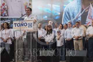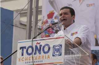 TEPIC, NAYARIT, 28MAYO2017.- Toño Echevarría, candidato a la gubernatura de Nayarit por el PAN, realizó su acto de cierre de campaña en las calles de la zona centro de Tepic. Al evento asistieron personalidades de su partido como Ricardo Anaya, presidente nacional, Francisco Vega, gobernador de Baja California, y Santiago Creel, senador de la República. FOTO: TERCERO DÍAZ /CUARTOSCURO.COM