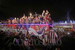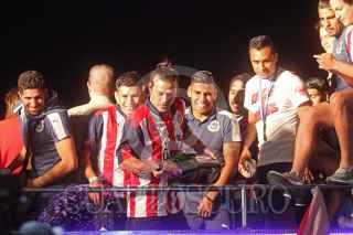 GUADALAJARA, JALISCO. 29MAYO2017.- El equipo de Chivas durante el festejo en la Glorieta de la Minerva, por el campeonato de la Liga MX obtenido la tarde de ayer en el Estadio Chivas, al vencer al equipo Regio de los Tigres de la UANL. FOTO: FERNANDO CARRANZA GARCIA / CUARTOSCURO.COM