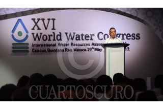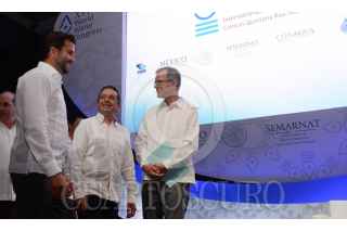 CANCÚN, QUINTANA ROO, 29MAYO2017. Carlos Joaquín González, gobernador del estado de Quinta Roo y Rafael Pachiano, secretario de medio ambiente y recursos naturales inauguraron el XVI World Water Congress (Congreso Mundial del Agua) que se realiza en este destino turístico. Uno de los temas más destacados fue el de la creación de políticas que garanticen la seguridad del agua. FOTO: ELIZABETH RUIZ /CUARTOSCURO.COM
