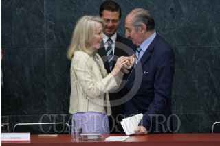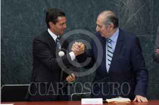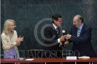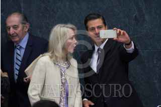CIUDAD DE MÉXICO, 29MAYO2017.- Silvia Lemús, viuda de Carlos Fuentes, y Enrique Peña Nieto, Presidente de México, se toman un selfie al terminar la ceremonia en la cual se le entregó al poeta Eduardo Lizalde Chávez el premio internacional "Carlos Fuentes" a la creación literaria en el idioma español, en la residencia oficial de Los Pinos. FOTO: MOISÉS PABLO /CUARTOSCURO.COM