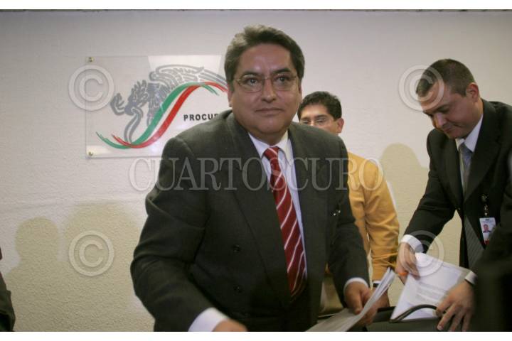 México, D. F. 30 Marzo 2004.- En conferencia de prensa Socrátes Campos, Jóse Luis Santiago y Gerardo Gracía Luna, director de la AFI informaron que la Procuraduría General de Justicia (PGR) vía la Secretaría de Relaciones Exteriores solicitará la extradición de Carlos Agustín Ahumada Kurtz por el delito de fraude genérico en agravio del gobierno del Distrito Federal. FOTO: Nelly Salas/CUARTOSCURO.COM