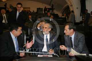 México, D. F. 30 Marzo 2004.- Enrique Jackson, presidente de la mesa directiva en el sanado de la República conversa con la senadora Dulce María Sauri previo a la sesión. FOTO: Nelly Salas/CUARTOSCURO.COM