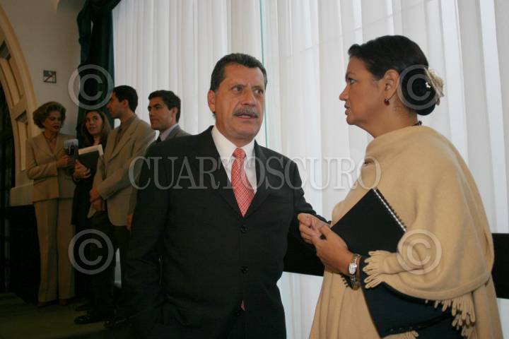 México, D. F. 30 Marzo 2004.- Enrique Jackson, presidente de la mesa directiva en el sanado de la República conversa con la senadora Dulce María Sauri previo a la sesión. FOTO: Nelly Salas/CUARTOSCURO.COM