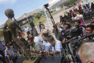 CIUDAD JUÁREZ, CHIHUAHUA, 30MAYO2017.- El Presidente Municipal Armando Cabada Alvídrez, participó en el homenaje que se realizó con la develación de las placas de los periodistas que han fallecido en años recientes bajo distintas circunstancias. Entre los homenajeados se encuentran Jorge Cháirez, Víctor Bartoli, Miroslava Breach, Moises Villeda y Armando Delgado. El evento fue organizado por la Asociación de Periodistas de Ciudad Juárez y tuvo lugar en la Plaza del Periodista, ubicada en calle Constitución entre 20 de noviembre e Insurgentes, de la colonia El Barreal. FOTO: NACHO RUÍZ /CUARTOSCURO.COM